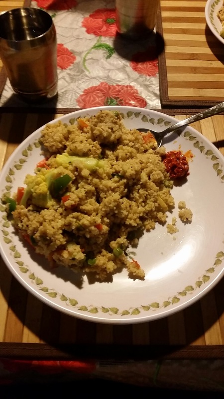I will also use this blog post to share pictures of some of the meals I have had so far. Mo Mos are chicken dumplings and are very tasty. There is another picture of a couscous-type dish that was very tasty as well. Another one of the pictures is of a banana and oats breakfast which was very delicious. The other picture below is called Dal Bhat which is a staple in Nepal. Most people here eat Dal Bhat every day for brunch and even for dinner, but the house I am staying in changes the meals up every day for our Western taste buds.